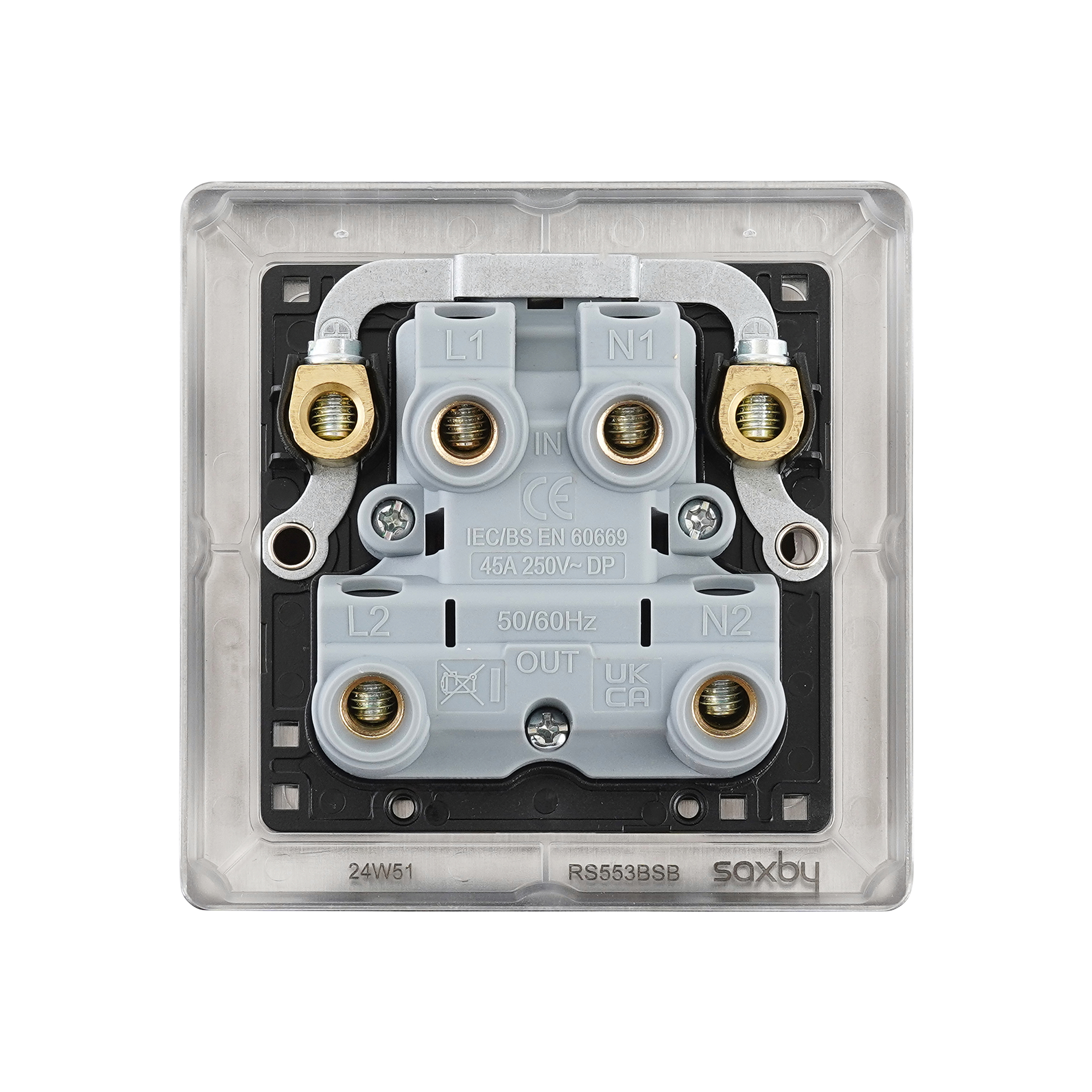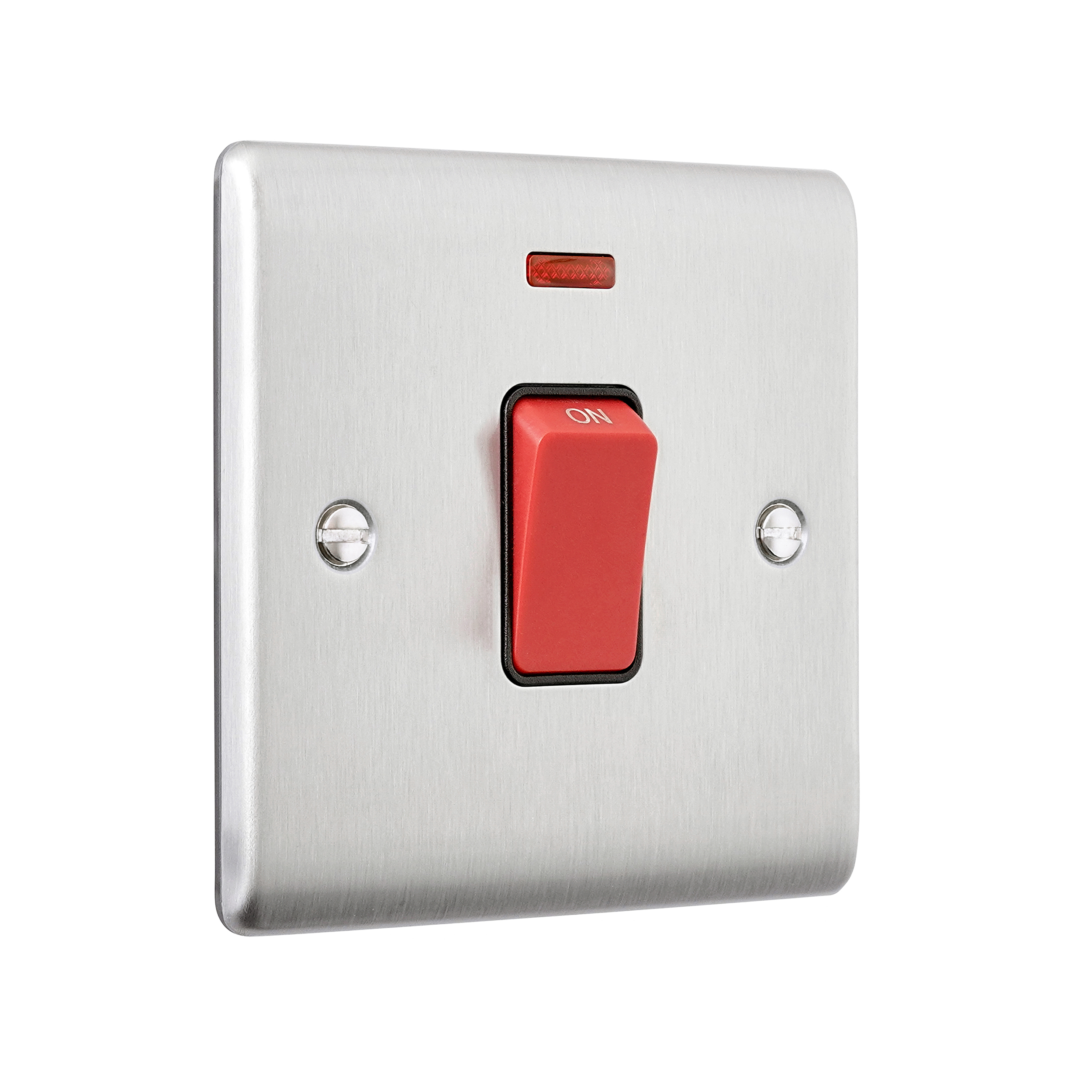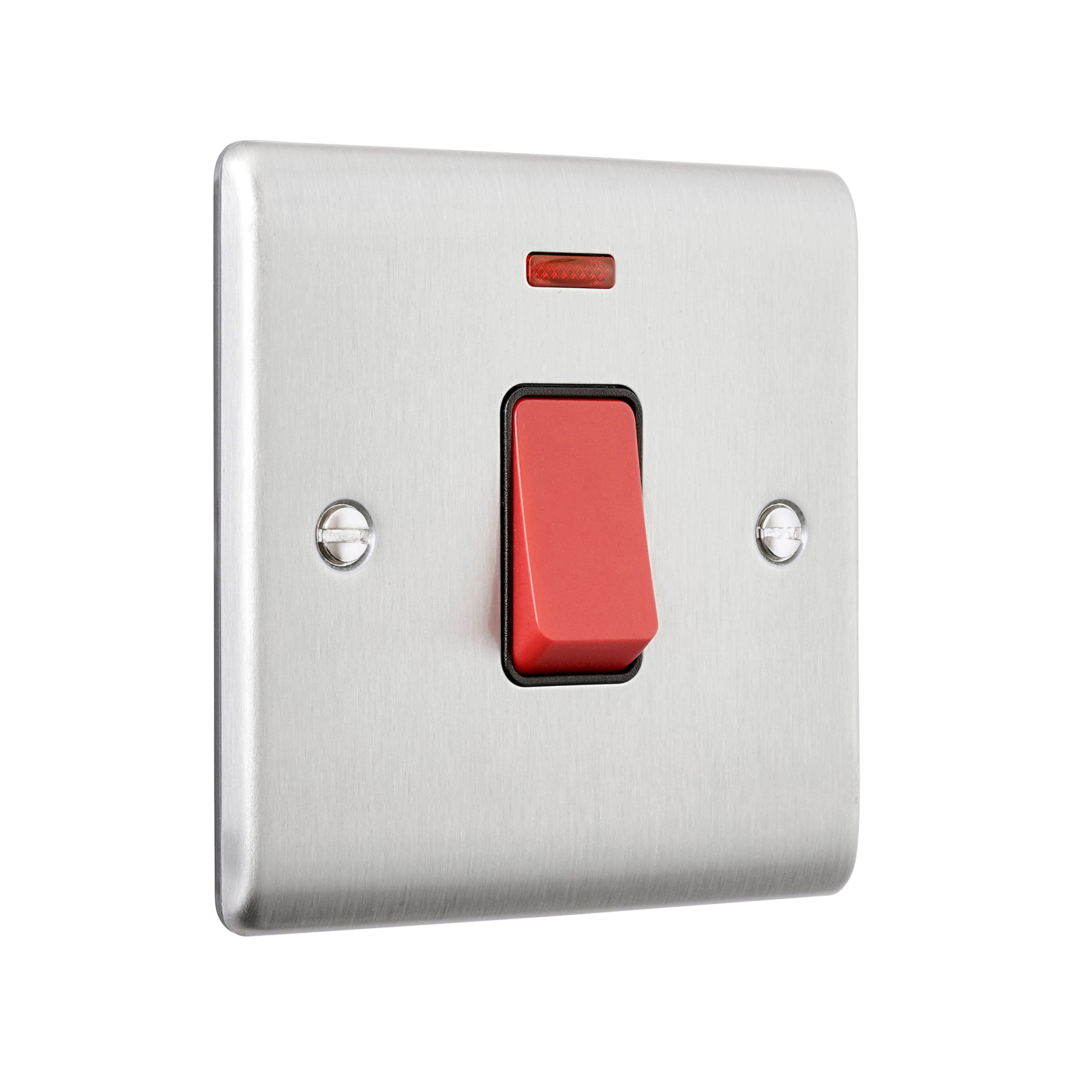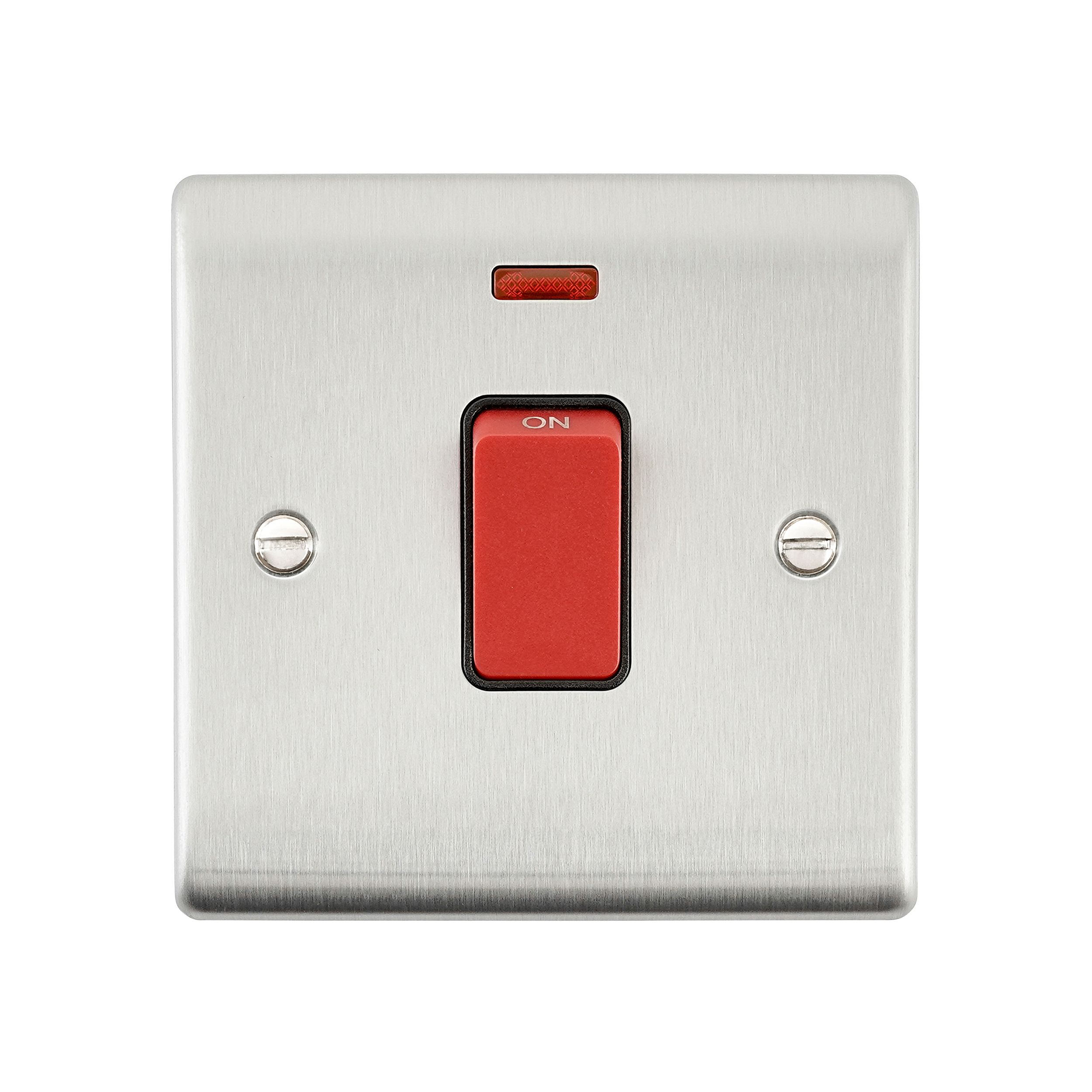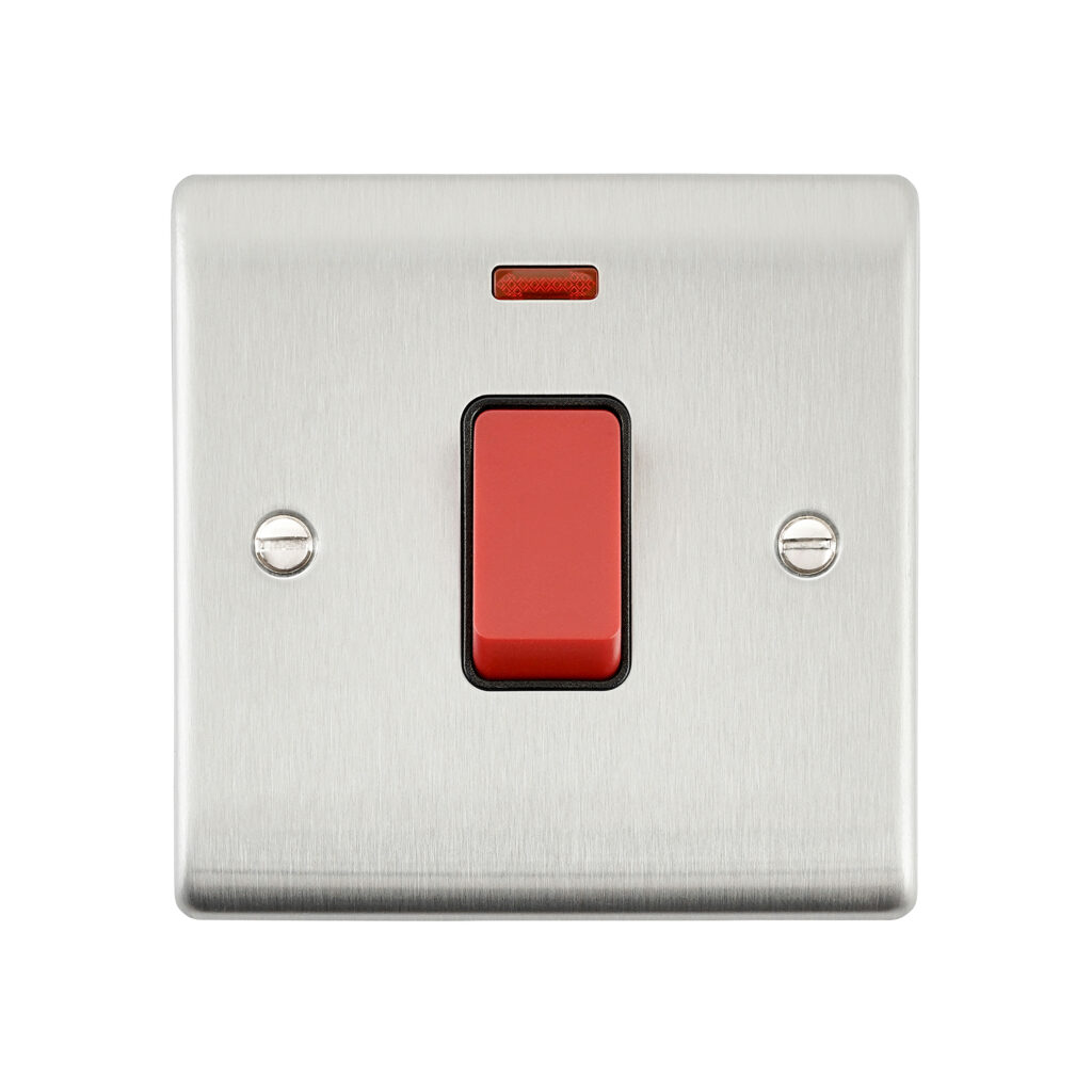 Saxby Electrical Raised Screwed 45A 1G DP Switch Neon Brushed Steel