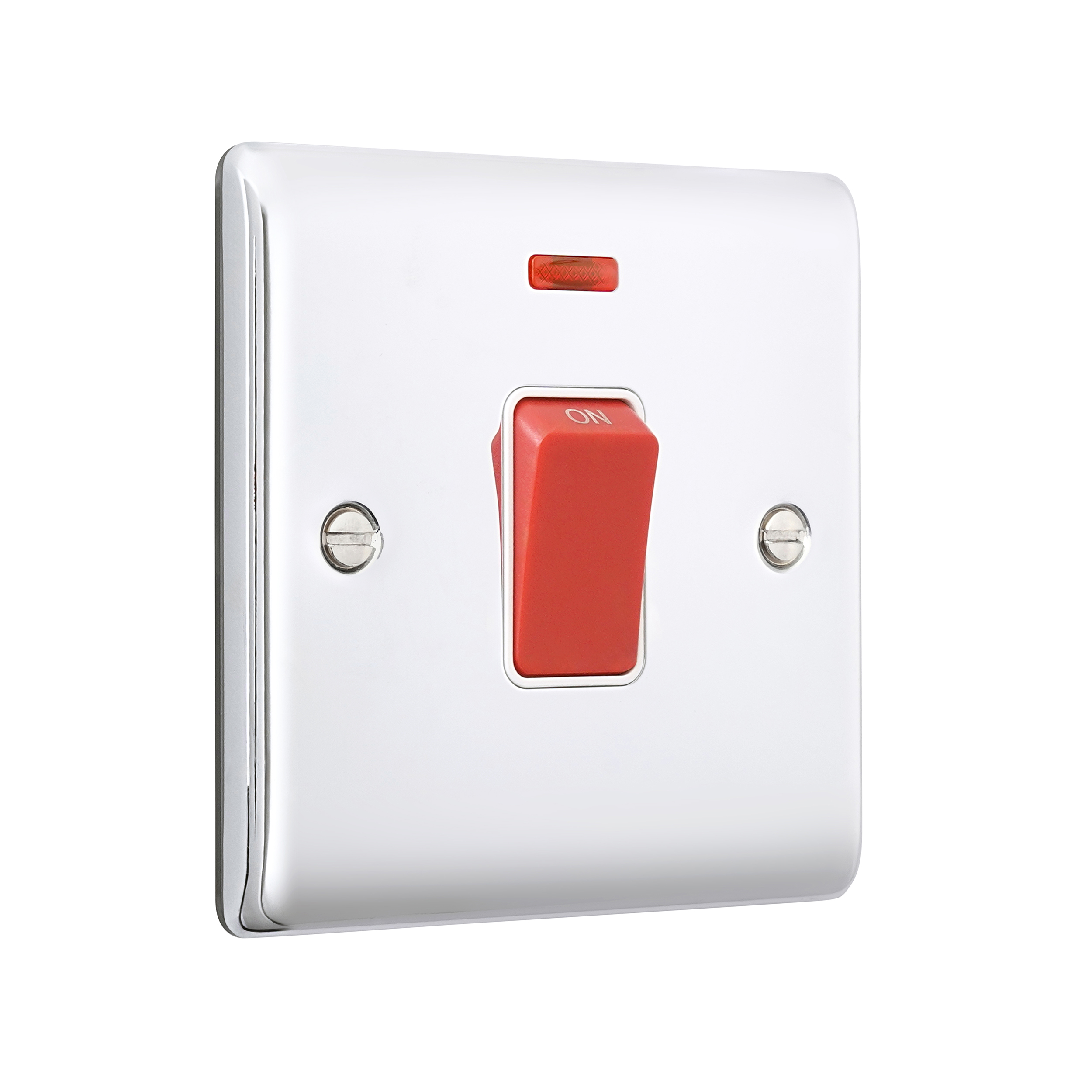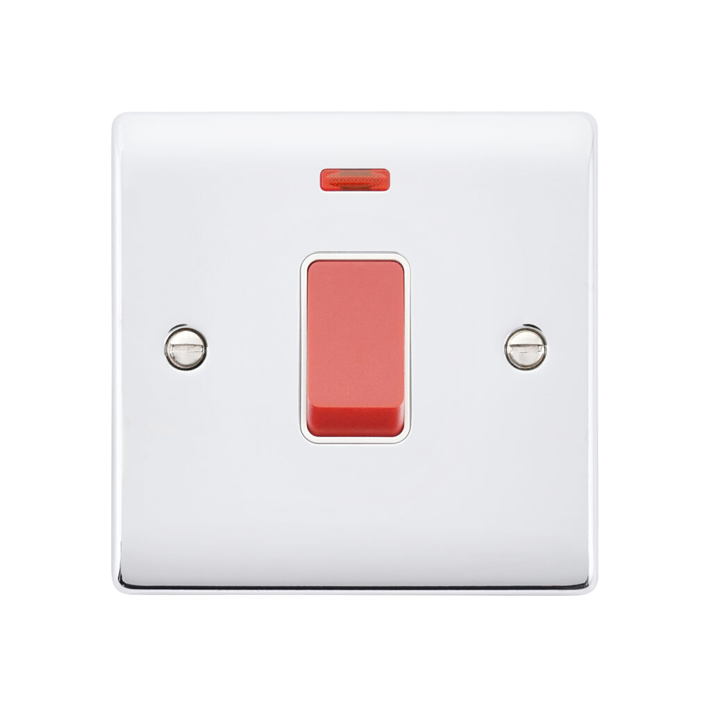 Saxby Electrical Raised Screwed 45A 1G DP Switch Neon Polished Chrome