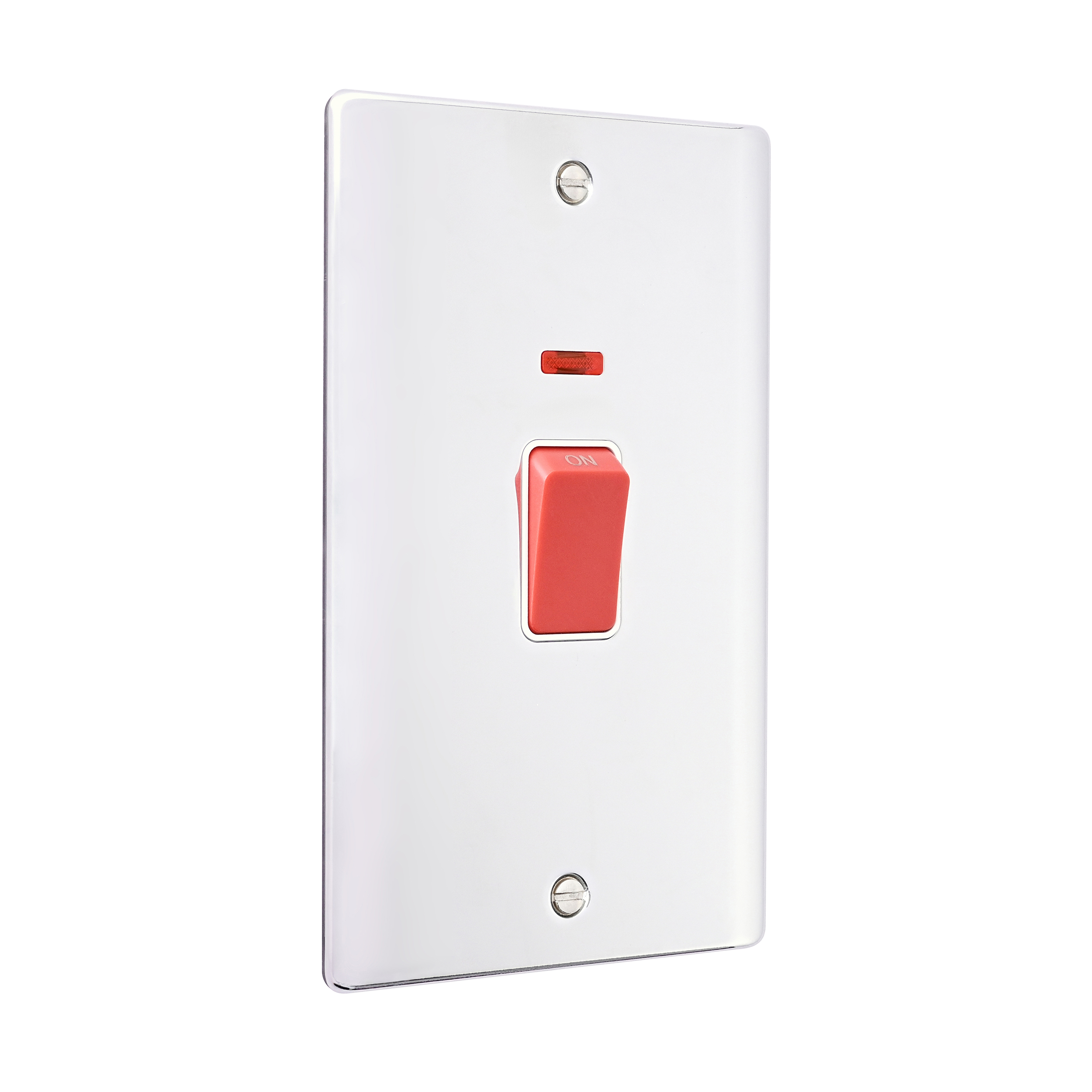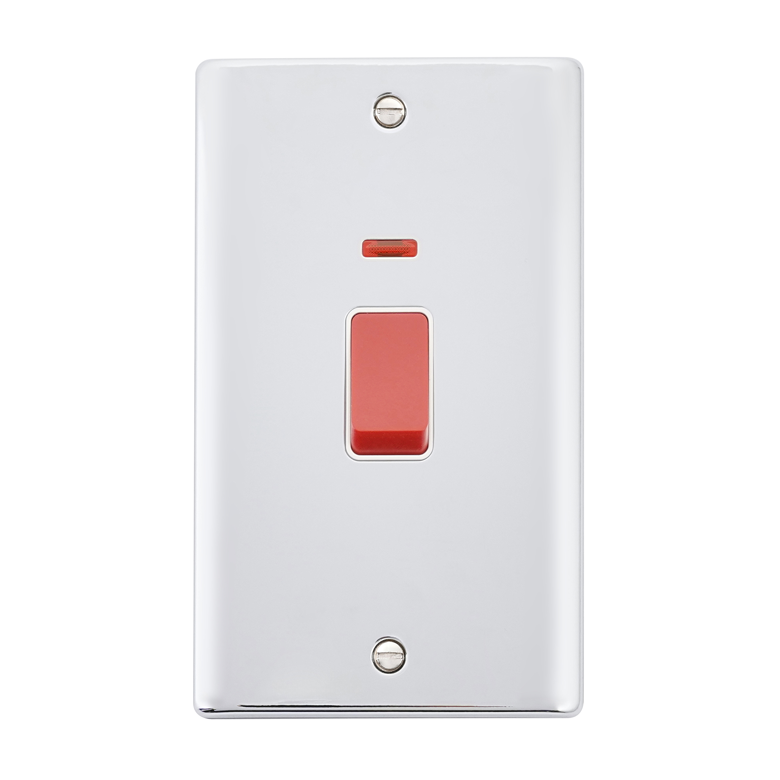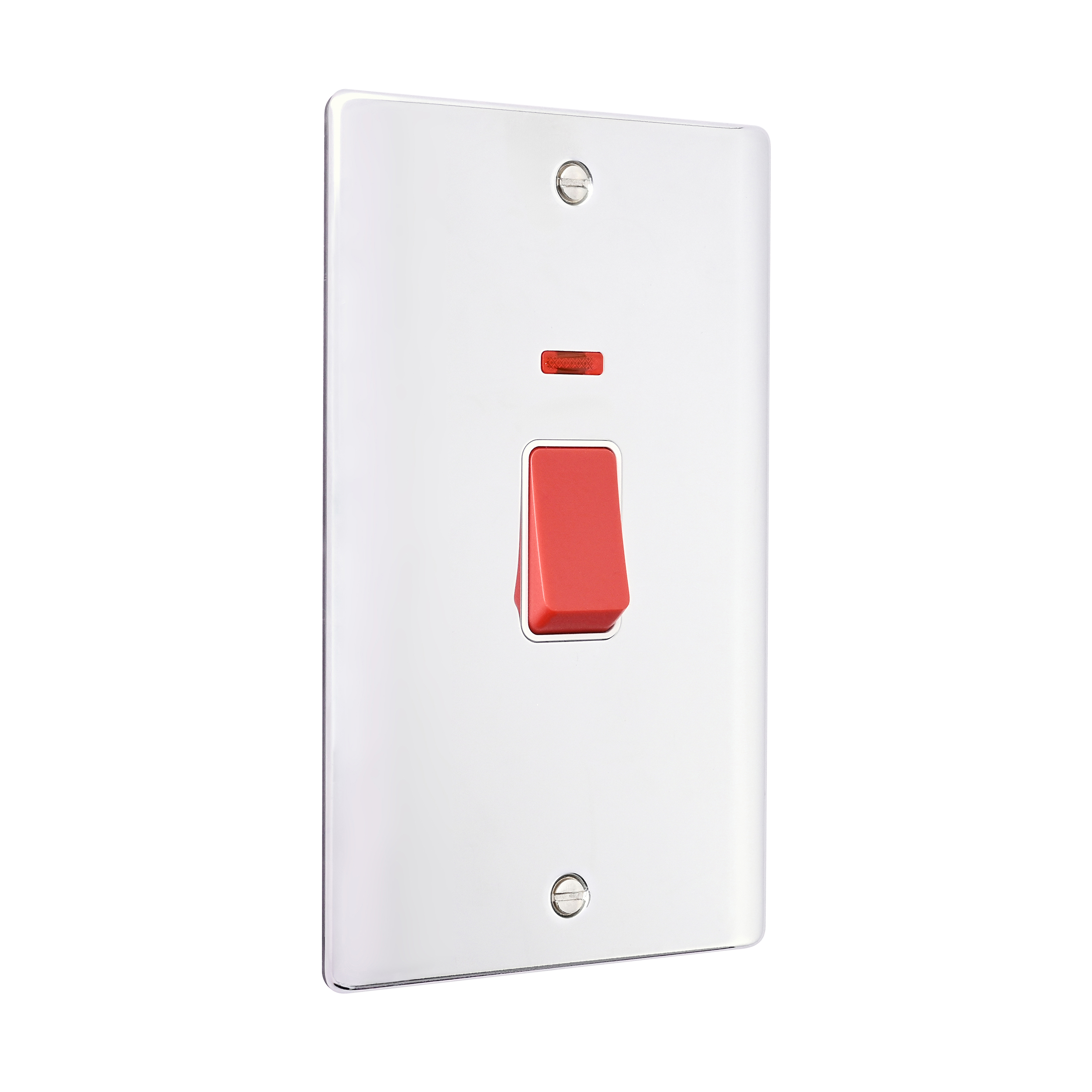 Saxby Electrical Raised Screwed 45A Large Plate DP Switch Neon Polished Chrome