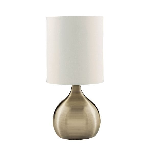 The Touch table lamp is perfect for lighting any bedroom, living room or dining room. The lamp is compact yet stylish with a sleek antique brass finish funnel base and white tall fabric drum shade. It’s also touch sensitive, with low, medium and high light settings, to create the perfect ambience in any corner of your home.