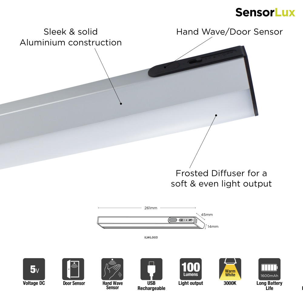 A USB rechargeable light ideal for cabinets, wardrobes and other spaces where wiring is inconvenient. The light is easily mounted on the surface with a sticky magnet. No electrician or tools required!