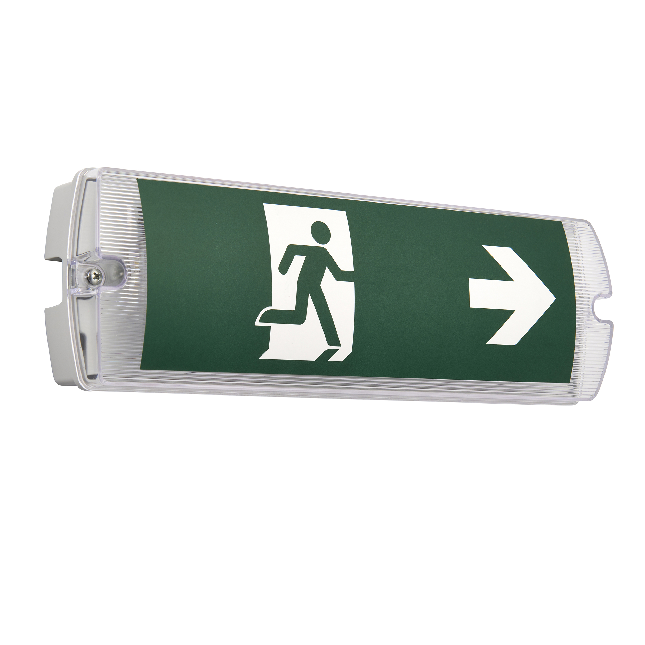 Reliable, robust, weatherproof and functional. This SightPRO LED bulkhead is as a maintained or non-maintained emergency fitting. The daylight white 3.8W LED module offers 300 lumens for up to 3 hours when power is lost. Supplied with a self-adhesive emergency sign kit