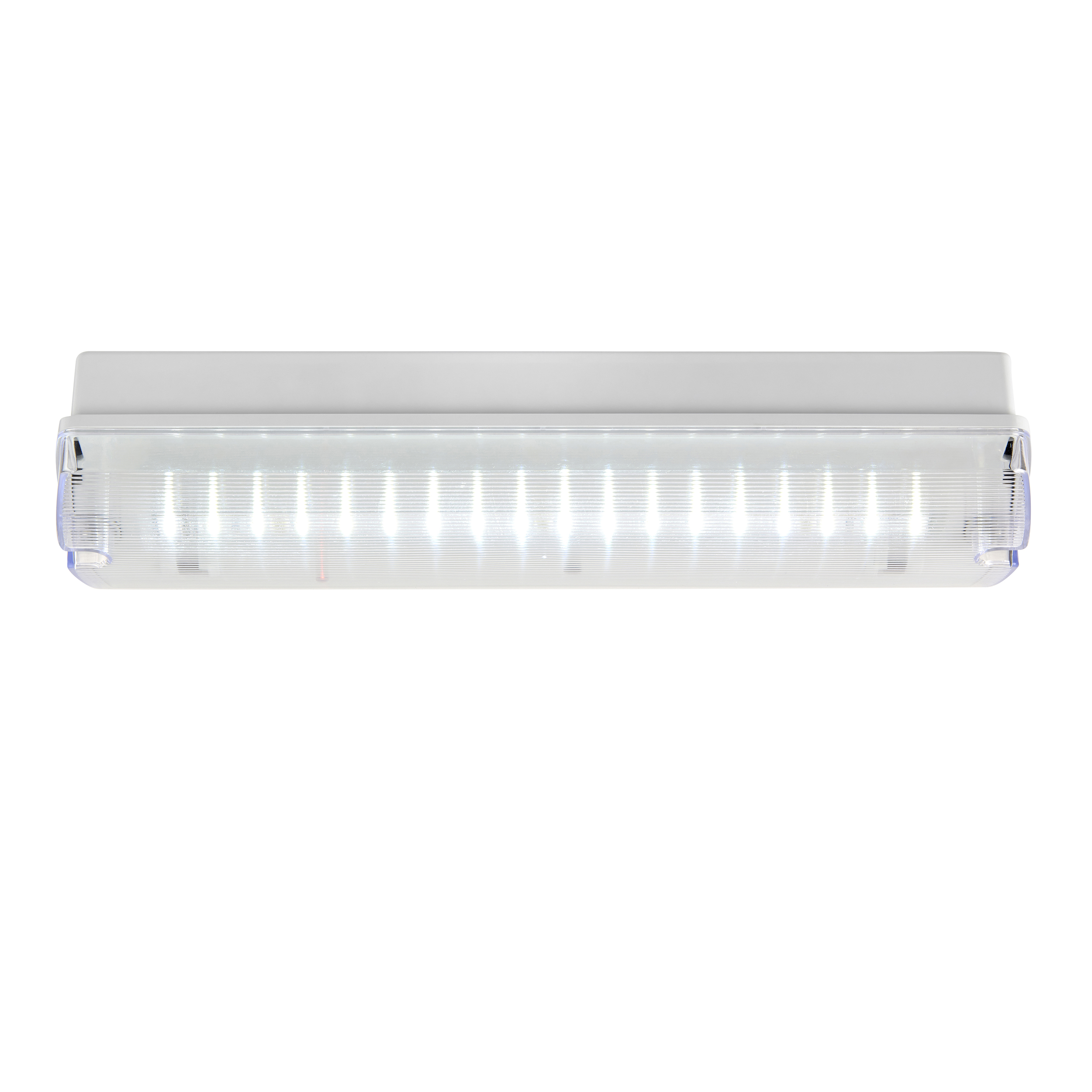 Reliable, robust, weatherproof and functional. This SightPRO LED bulkhead is as a maintained or non-maintained emergency fitting with a self test mode built in. The daylight white 4W LED module offers 300 lumens for up to 3 hours when power is lost. Supplied with a self-adhesive emergency sign kit