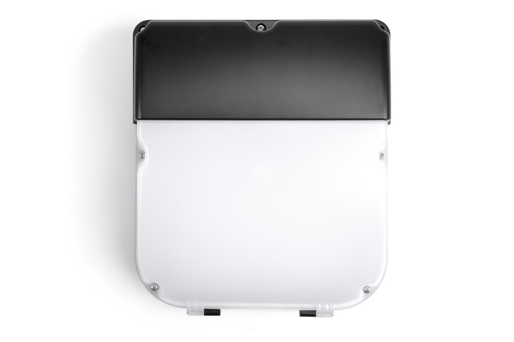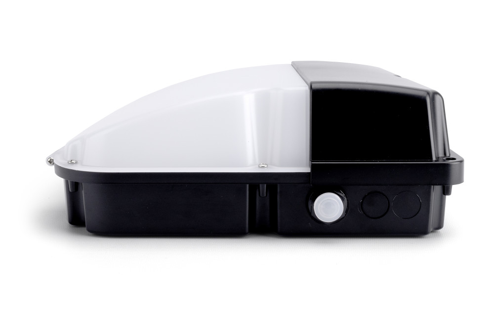 Equipped with a photocell sensor, this Wallpack turns on at dusk and off at dawn to provide automatic illumination during nighttime hours.