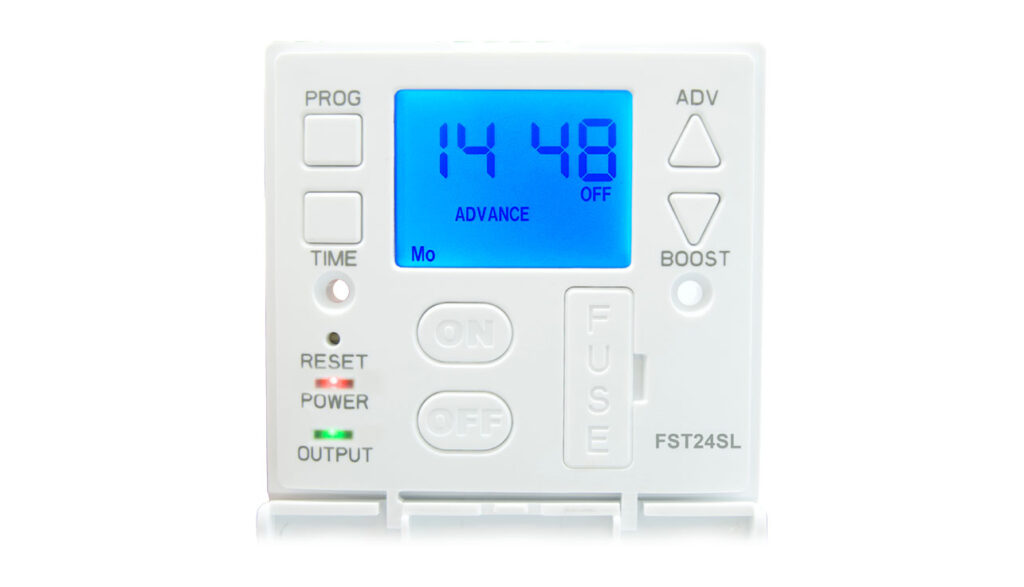 The FST24SL serves as a capable timer switch. Among the notable features: Easy view 24 hour digital clock/timer display, Red LED ON, Green LED Output indicators, Up to 4 ON and OFF programmes per day, Permanent ON/ OFF function, Boost option 1 or 2hrs. The unit aligns with common requirements such as up to 24 hours. It is a practical choice where reliability and tidy integration matter