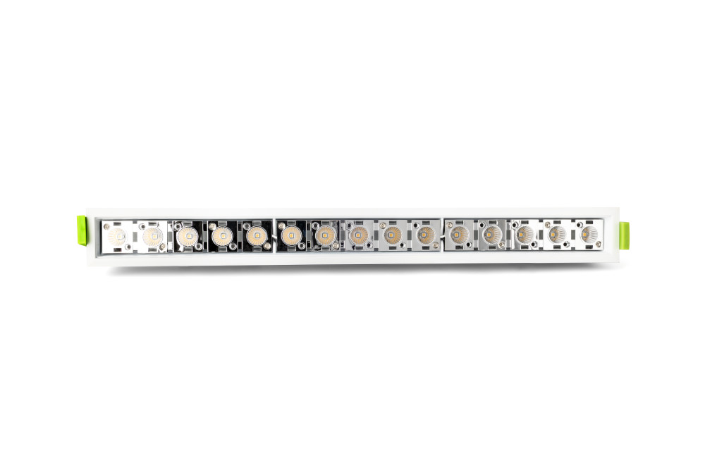 The lights contain heavily recessed LEDs and can be integrated into a UGR<19 lighting scheme to achieve very low glare, and feature CRI90 to make colours pop. The single die caste aluminium body dissipates heat super efficiently.