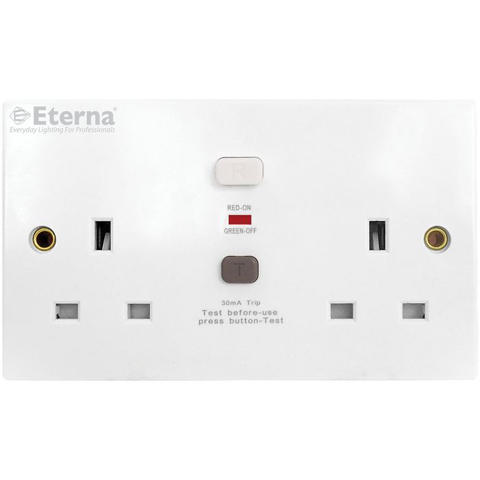 Simple to install 2-gang unswitched passive RCD socket with durable metal clad exterior, perfect for providing local electrical protection in garages, workshops or warehouses