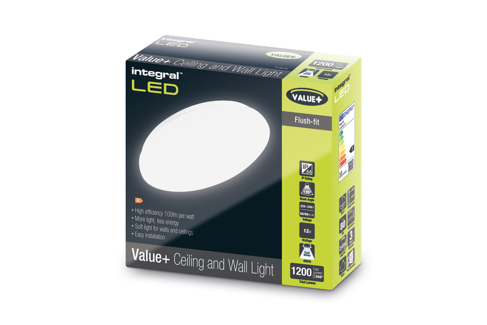 Low-energy LED IP44 Value+ ceiling and wall light, suitable for all indoor areas such as hallways, stairways, walls and ceilings including bathrooms (Zone 2) and covered (sheltered) external areas, such as porches. PMMA Diffuser provides a soft light. Long life expectancy of 25,000 hours based on normal usage. 3 year warranty.